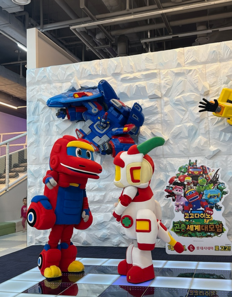 고고다이노를 방문했을 때 공룡 테마로 실내 놀이터를 꾸몄지만 쥬라기 월드에 느낌보다는 재미있는 놀이 동산의 느낌을 처음 받았어요. 아이들이 올라타고 사진을 찍을 수 있는 공룡과 이벤트에서 고고다이노의 캐릭터들이 살아 움직이는 느낌을 받았답니다!