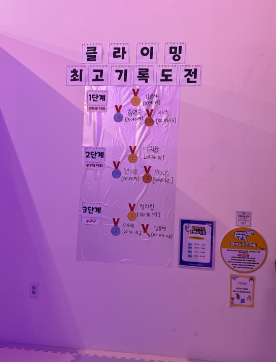 다양한 놀이 체험존 뿐만 아니라 클라이밍을 할 수 있게 안전 장비를 갖추고 있어요. 클라이밍하면 위험하다고 생각 할 수 있지만, 유아 뿐만 아니라 초등학생들도 와서 놀 수 있는 공간이라, 형과 누나가 있는 집이라면 함께 오시기 좋은 곳 같습니다. 😊