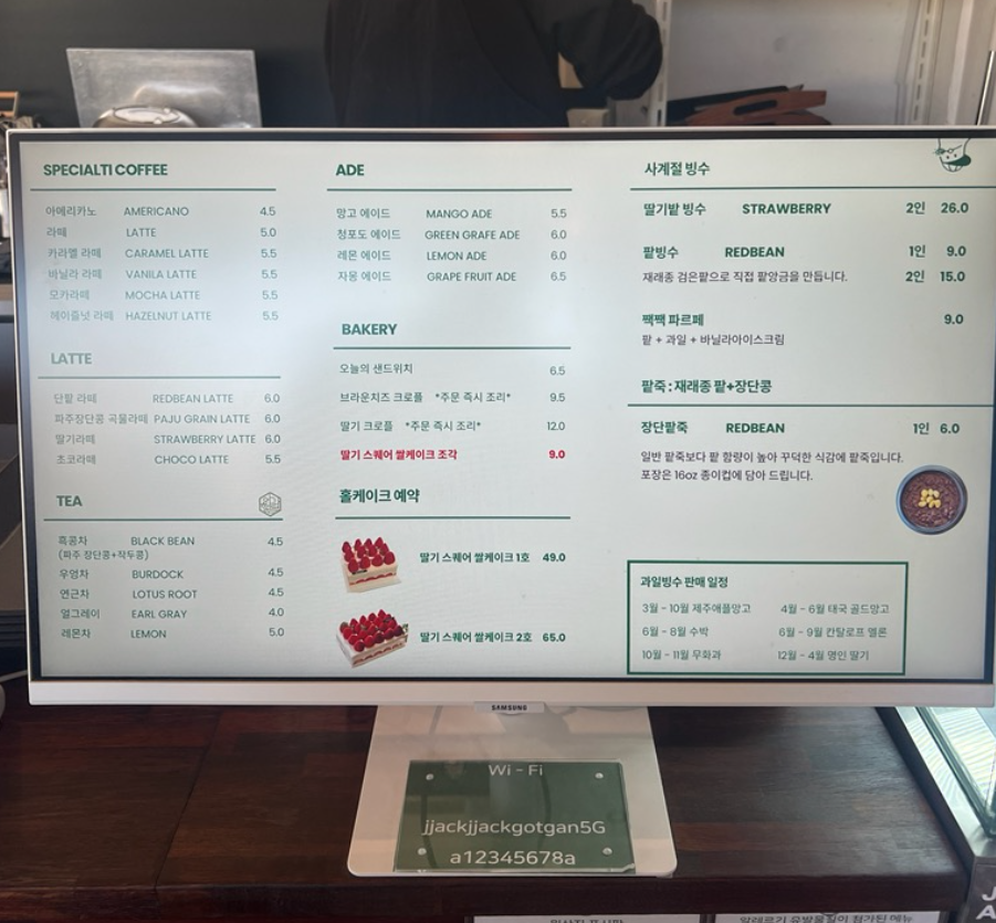 여름에는 팥빙수를 메인으로 하시는 데 꽤 맛있어 보였어요!