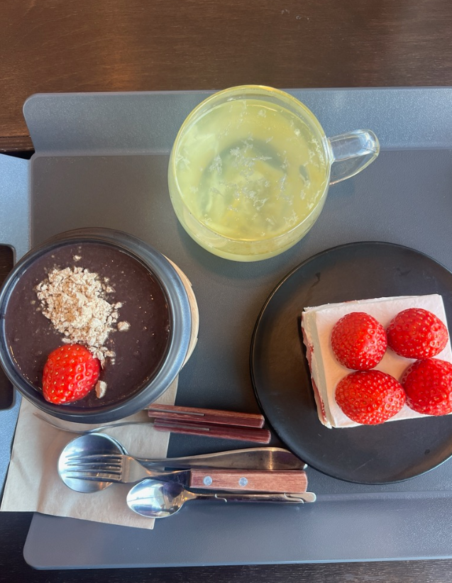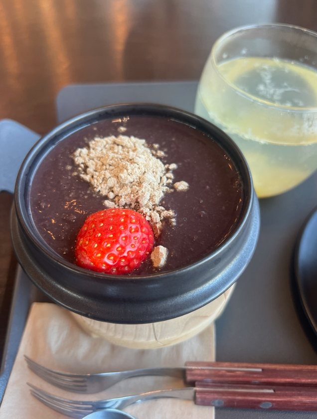 저는 딸기 케이크 말고 팥죽을 시켰는데, 팥죽도 꽤 맛있었습니다. ㅎ 인공의 맛이 없고 아주 달짝한 팥죽의 맛 그대로 였습니다.